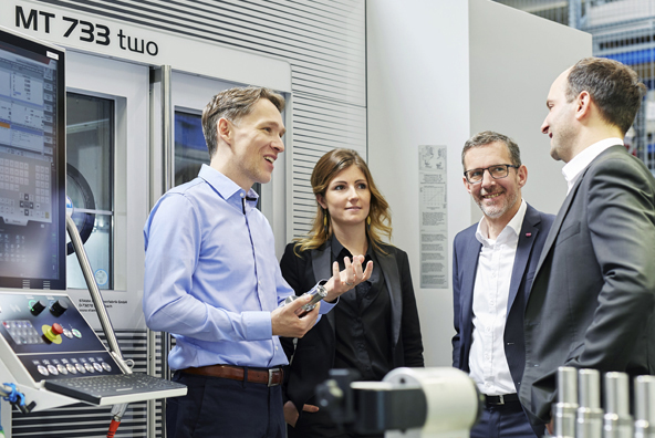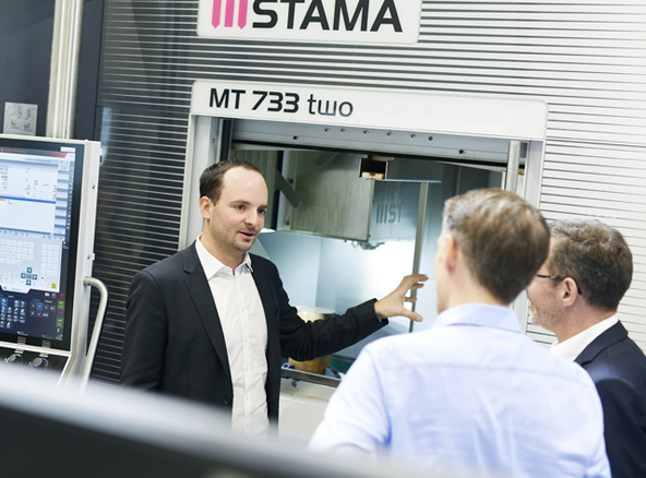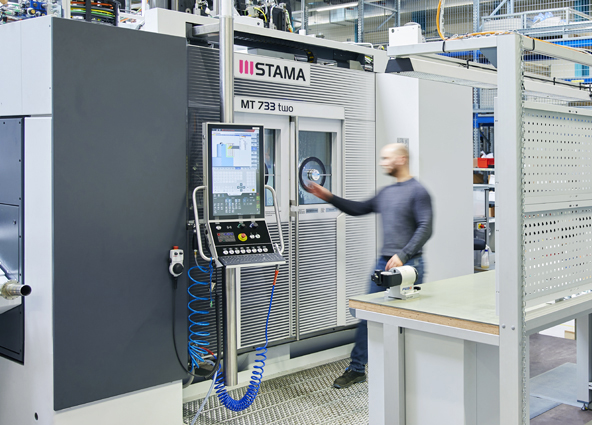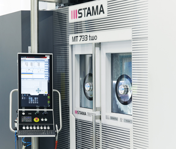 在2018年AMB的展會上,STAMA公司推出了其全新的、可用于6面加工的MT 733銑車復(fù)合加工中心。創(chuàng)新的模塊化MT平臺帶有四款模塊,在穩(wěn)定性和精度方面都樹立了新的標(biāo)準(zhǔn),其中威騰斯坦的Galaxie? 驅(qū)動系統(tǒng)應(yīng)用于B軸上,以其優(yōu)越的剛度、零背隙和出色的定位精度做出了決定性的貢獻。至此,雙方進一步發(fā)展成為了技術(shù)合作伙伴關(guān)系 — 在過去的一年里,威騰斯坦一直在為STAMA制造的MT 733 two提供零部件。