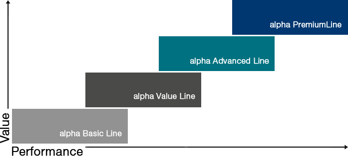 對于伺服軸和線性系統(tǒng)有平均要求的應用來說,alpha Value Line的產品具有完美的高性價比。這些可單獨配置的產品,精度范圍在6 - 10 arcmin,配備各種輸出接口形式,因此這個系列的產品具有最大的靈活性。